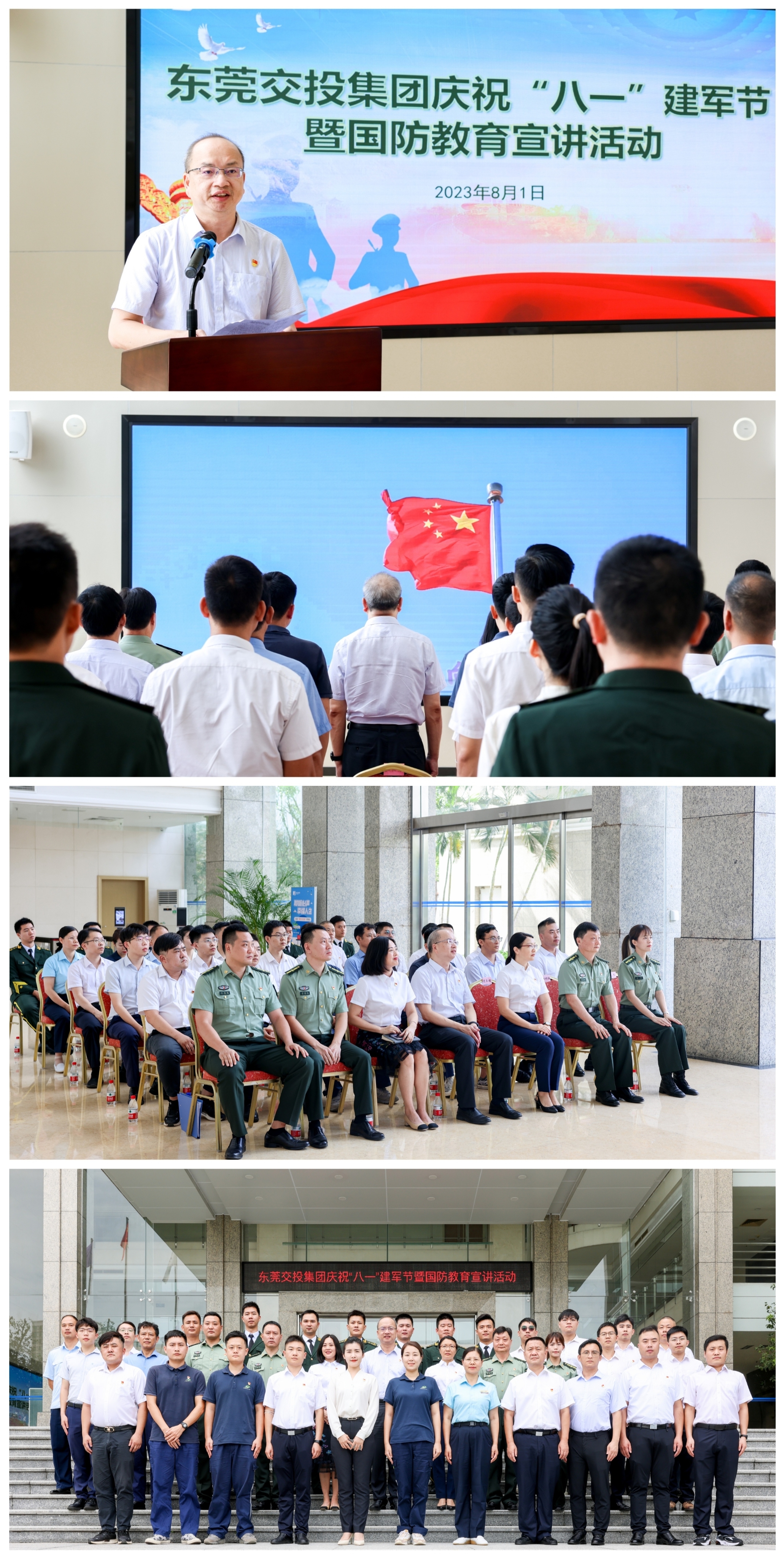 2023年8月1日上午,東莞交投集團(tuán)在集團(tuán)公司一樓大堂舉行慶?!鞍艘弧苯ㄜ姽?jié)暨國(guó)防教育宣講活動(dòng),集團(tuán)黨委委員、副總經(jīng)理袁國(guó)超,集團(tuán)工聯(lián)會(huì)主席袁翠娟以及集團(tuán)武裝部專武干部、集團(tuán)系統(tǒng)退役軍人、基干民兵、職工代表等參加活動(dòng)。