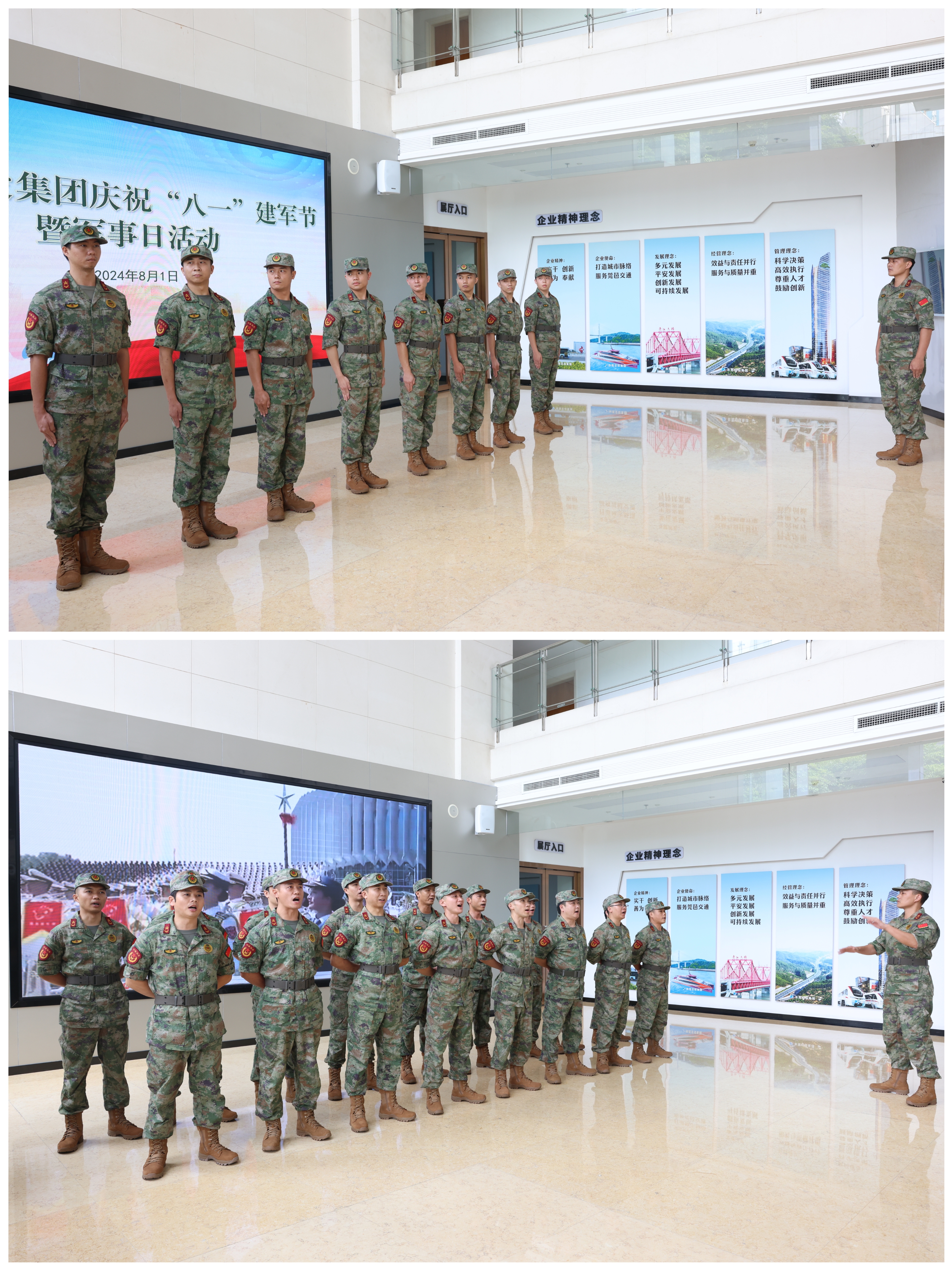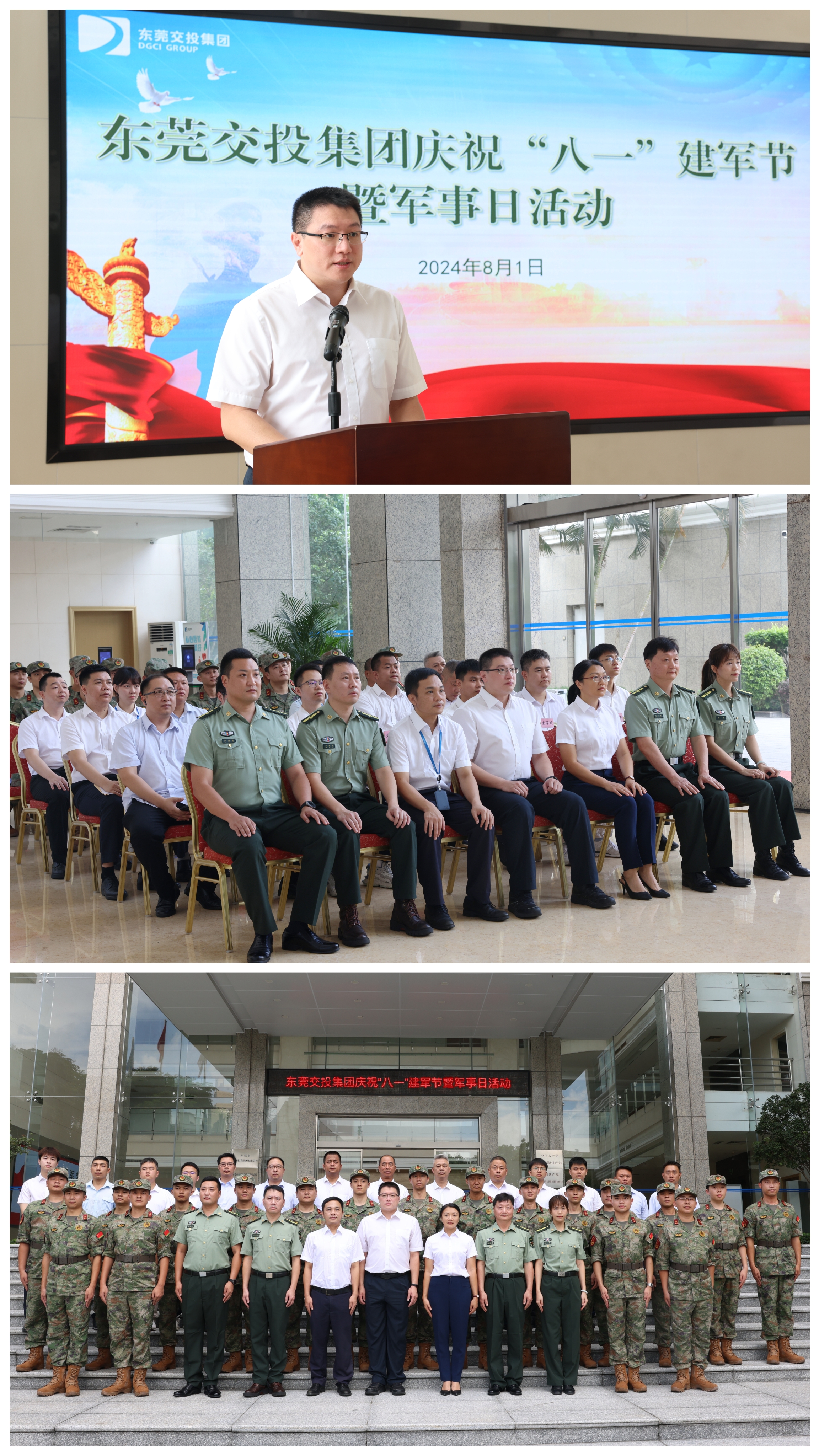 2024年8月1日上午,東莞交投集團(tuán)舉行慶?!鞍艘弧苯ㄜ姽?jié)暨軍事日活動,集團(tuán)黨委副書記祁杰超,集團(tuán)高級政工總監(jiān)袁翠娟以及集團(tuán)部室負(fù)責(zé)人、專武干部、集團(tuán)系統(tǒng)退役軍人、基干民兵代表等參加活動。