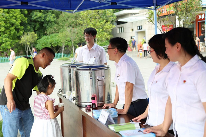 2018年7月19日,?;⒎止局驹阜?wù)主題黨日活動(dòng),為來(lái)往司乘人員提供涼茶、茶葉茶等解暑飲料。