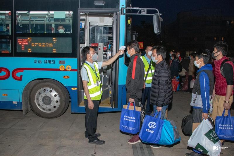 濱海灣公交公司接送湖北籍返莞專列,發(fā)車!