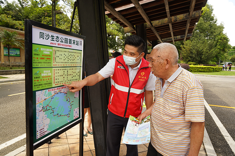 松山湖公交公司前往站場派發(fā)小紅旗,與乘客共度國慶。