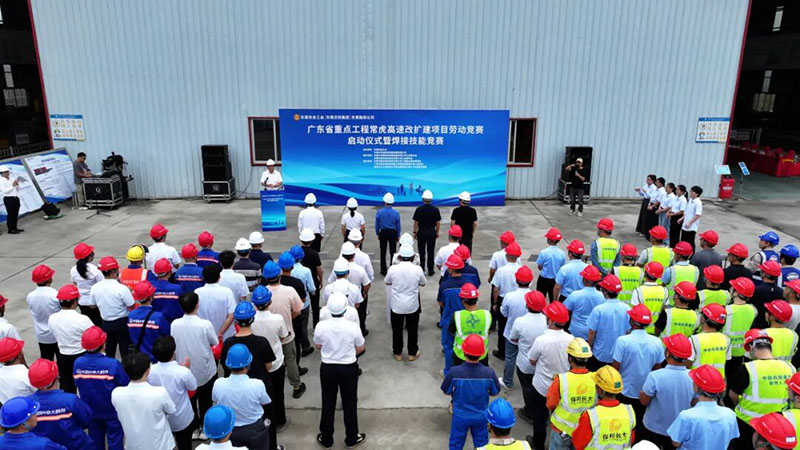 10月30日上午,?;⒏咚俑臄U(kuò)建項(xiàng)目勞動(dòng)競賽啟動(dòng)儀式暨焊接技能競賽在?;⒏咚俑臄U(kuò)建項(xiàng)目七標(biāo)項(xiàng)目部鋼筋場內(nèi)舉行,作為激發(fā)項(xiàng)目建設(shè)動(dòng)能、錘煉一線技能尖兵的重要舉措,此次活動(dòng)以“賽”賦能,為打造優(yōu)質(zhì)精品工程奠定堅(jiān)實(shí)基礎(chǔ)。東莞市總工會(huì)、交控集團(tuán)工聯(lián)會(huì)、路橋公司相關(guān)負(fù)責(zé)人,項(xiàng)目業(yè)主、施工、監(jiān)理、檢測、設(shè)計(jì)等單位代表及一線建設(shè)者約100人參加了啟動(dòng)儀式。