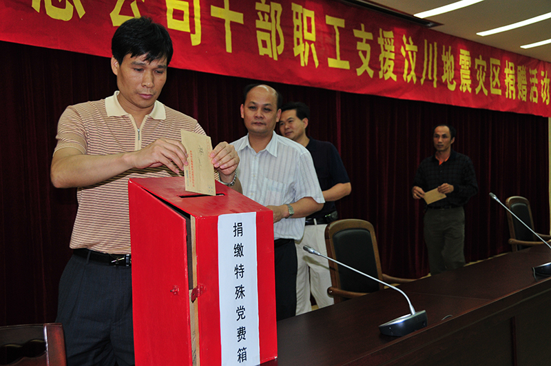 2008年5月16日,市路橋總公司開展干部職工支援汶川地震災(zāi)區(qū)捐贈活動,黨員捐繳特殊黨費。