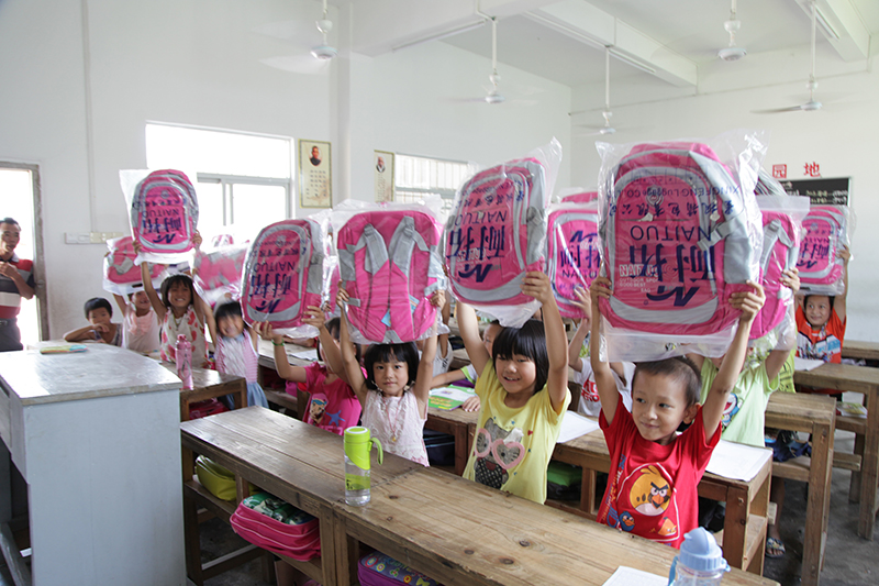 2015年9月17日,東莞控股公司到揭陽市崎岎小學(xué)開展幫扶活動,為學(xué)生派發(fā)書包。