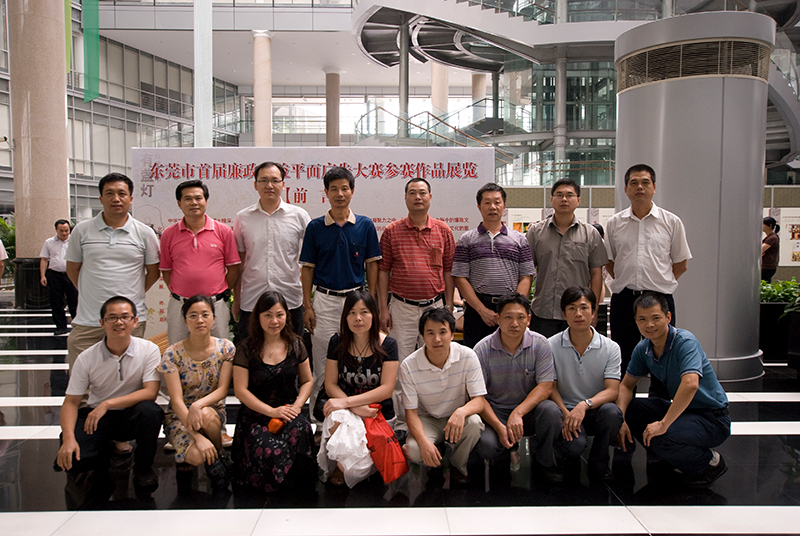 2010年7月29日,黨支部黨員參加?xùn)|莞市首屆廉政公益平面廣告參賽作品展覽合影。