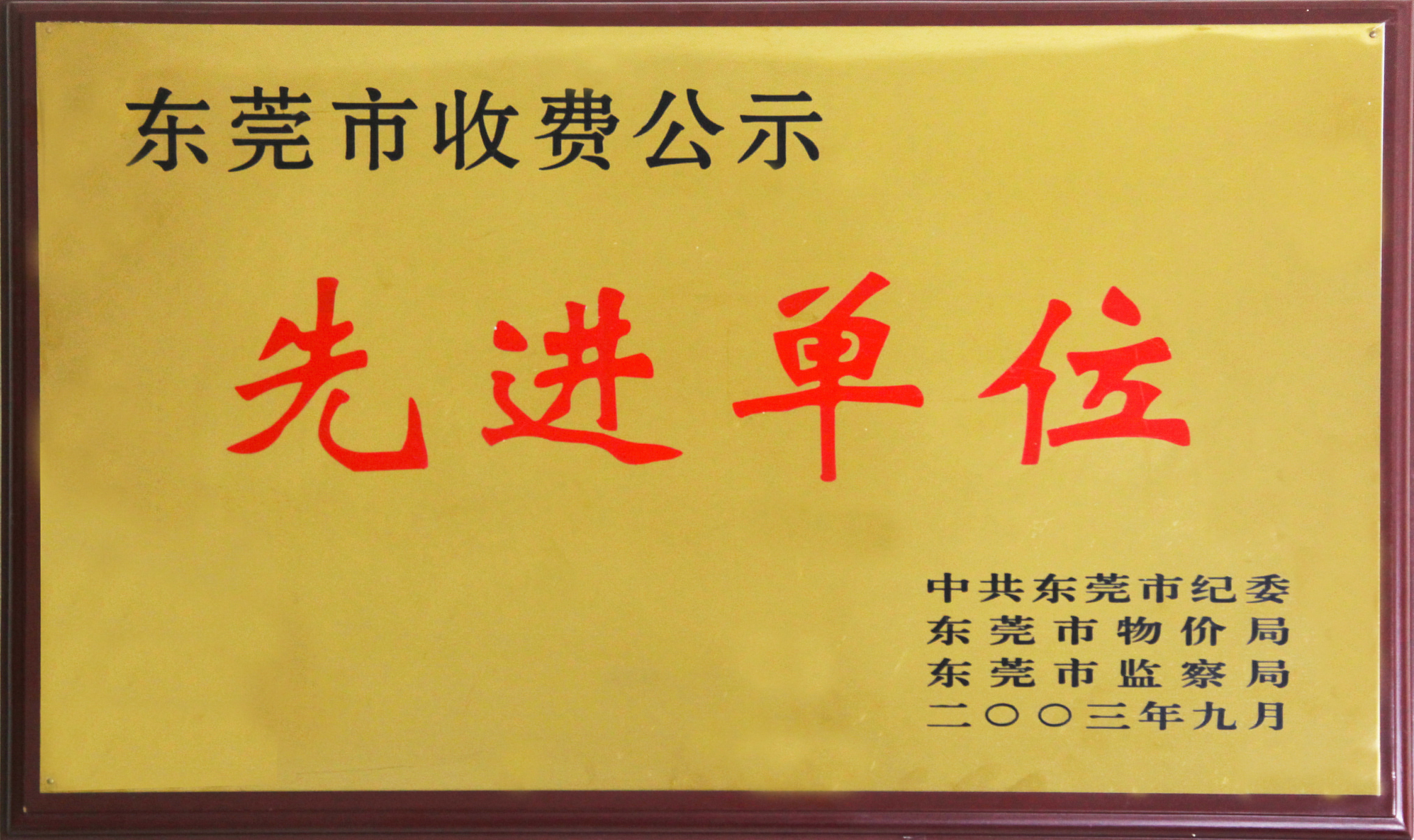 2003年9月,莞深高速榮獲東莞市收費公示”先進單位“榮譽稱號。