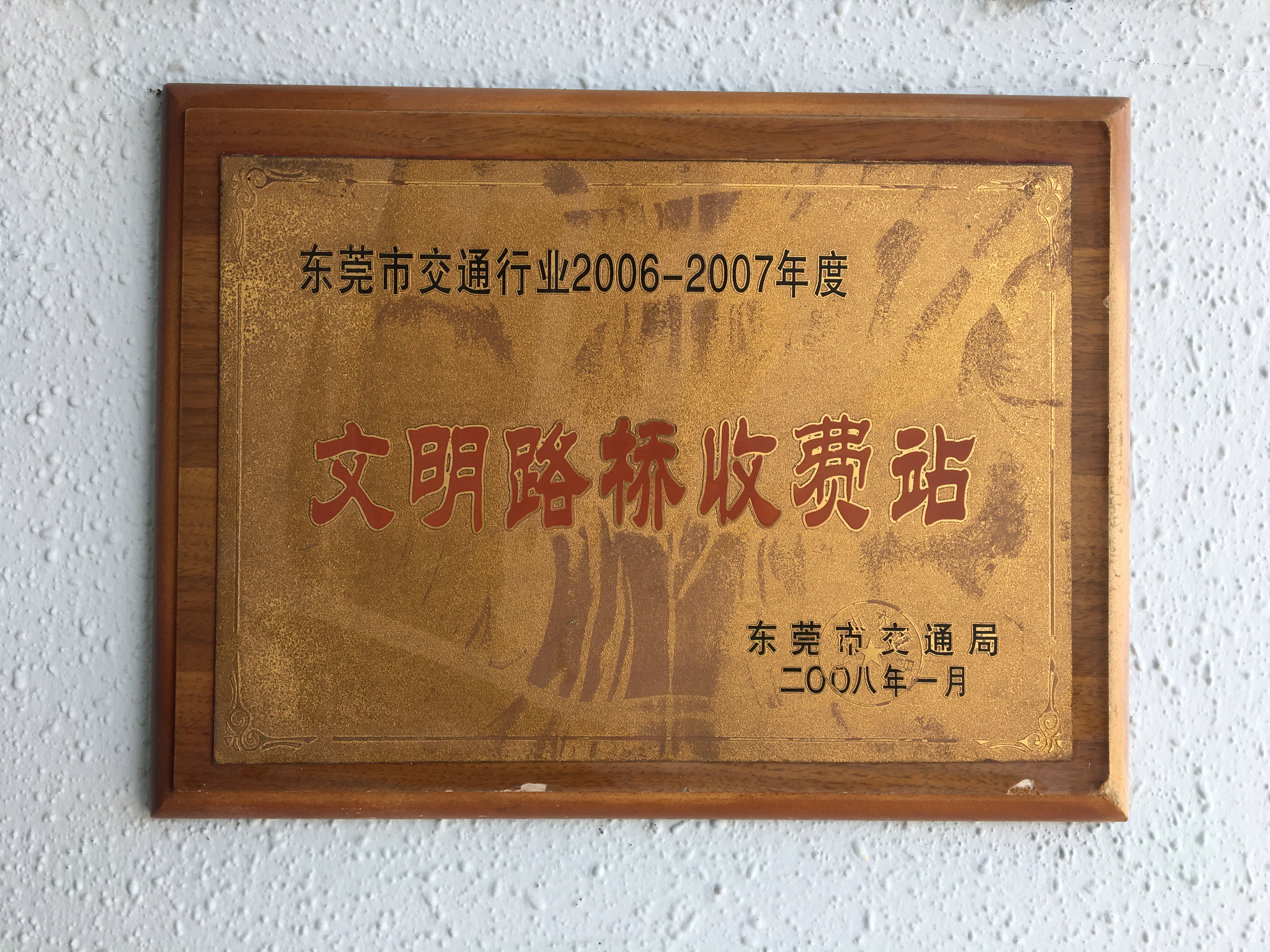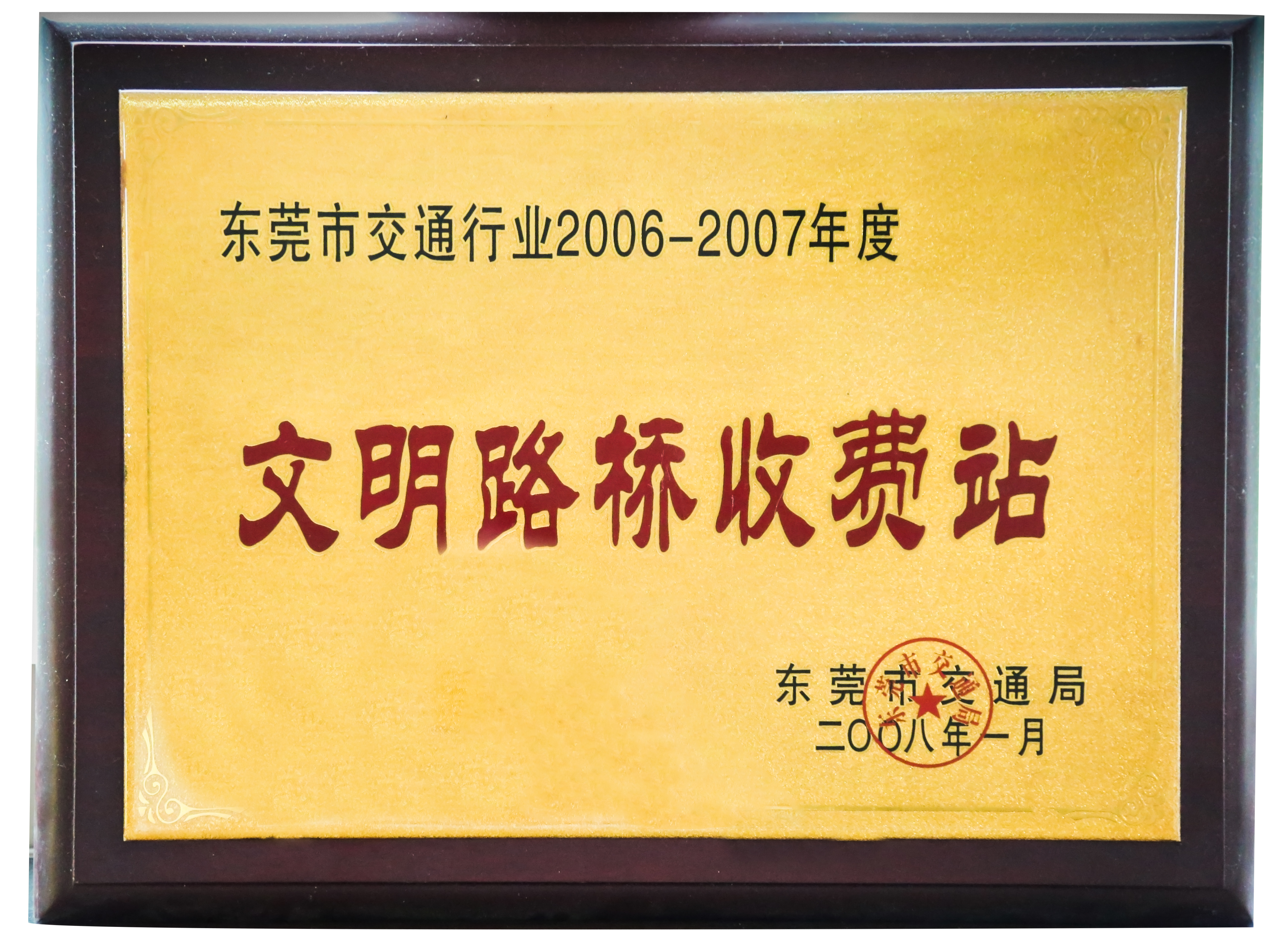 2008年1月,東莞市交通局授予?;⒏咚贃|深路站“東莞市交通行業(yè)2006-2007年度文明路橋收費站”榮譽稱號。