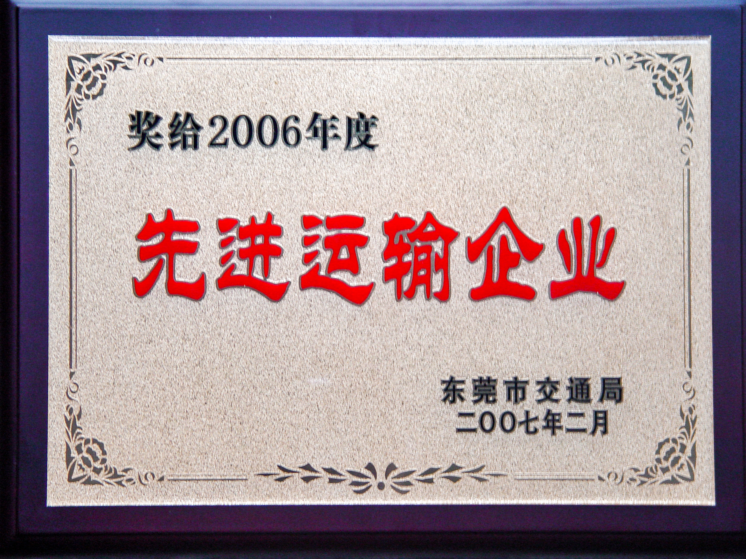 2007年2月,東莞市交通局授予虎門港澳客運公司“先進運輸企業(yè)”榮譽稱號。