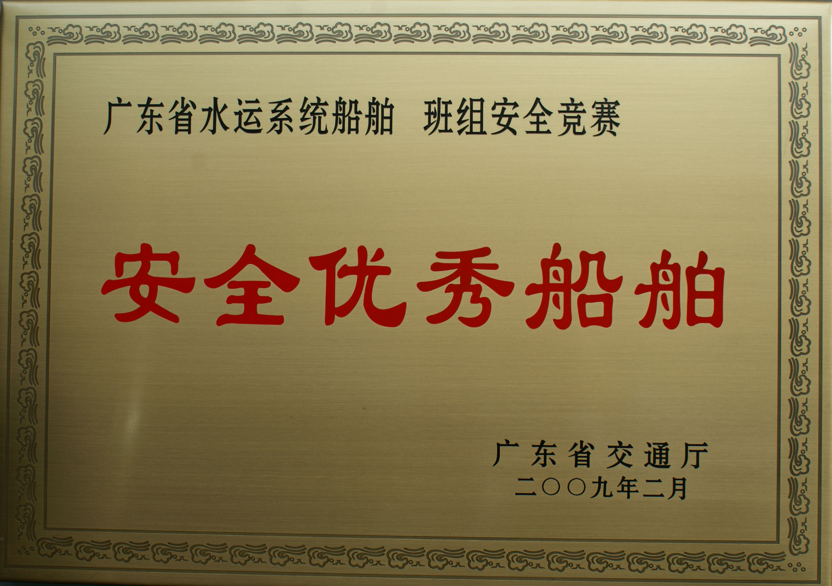 2009年2月,虎門港澳客運公司“太建”高速客輪在廣東省水運系統(tǒng)船舶、班組安全競賽中,被廣東省交通廳評為“安全優(yōu)秀船舶”。
