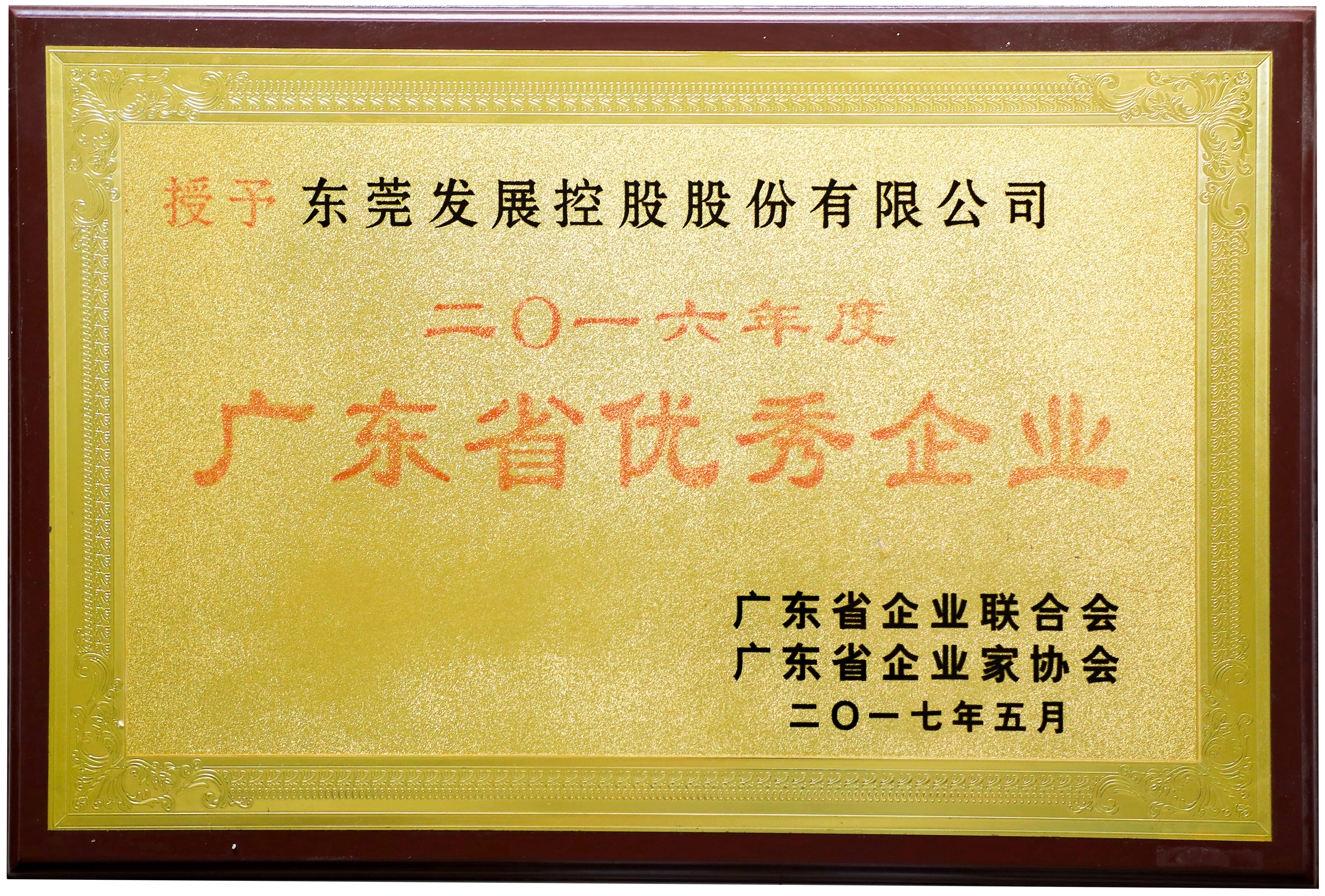 2017年5月,東莞控股公司榮獲“2016年度廣東省優(yōu)秀企業(yè)”榮譽稱號。