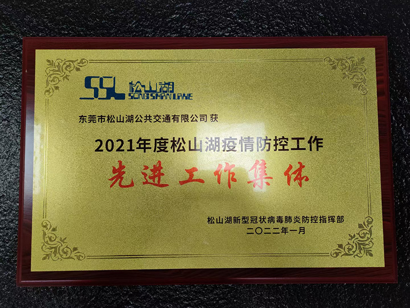2022年1月,松山湖新型冠狀病毒肺炎防控指揮部授予東莞市松山湖公共交通有限公司2021年度松山湖疫情防控工作先進工作集體